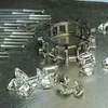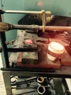At the diamond setters bench.Diamond setters benches are so not glamorous, funny enough it's where the diamonds get pounded on, but wax on, lit up with a lighter, they get abused but they end up going to the polisher next where they come back to life.