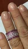 Pink sapphires and diamonds.Me. taking pics of sample bands.